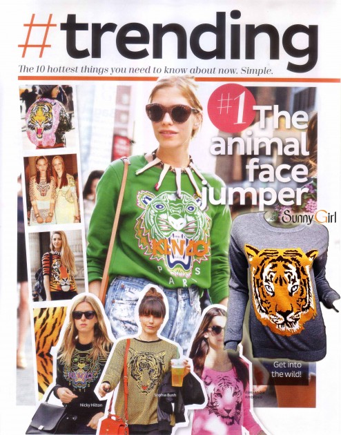 See the full articleKENZO has a lot to answer for with many a young starlet sporting the tiger face from the streets to Fashion Weeks everywhere – have you got your face on…..